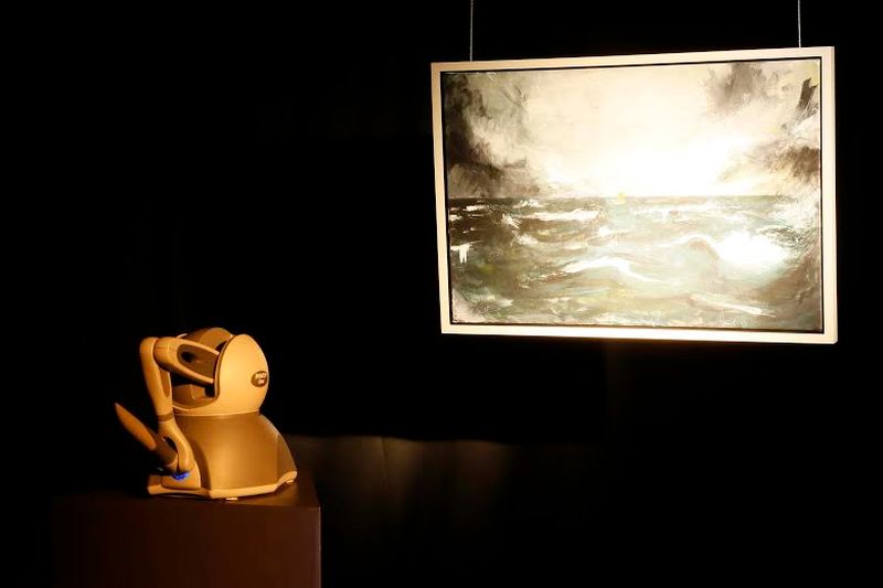 Visitors to the Into the Frame exhibition, at Red Gallery in Shoreditch were immersed in a rich tapestry of 3D sound, sight and touch by using haptic technology allowed visitors to 'feel' the textures of the painting – if it was directed upwards into the air, the motion becomes light and fluid. Alternately, when directed into the water the device became resistant. 3D soundscapes powered by two subwoofers and 12 speakers surrounded visitors and changed according to where the device was pointed.