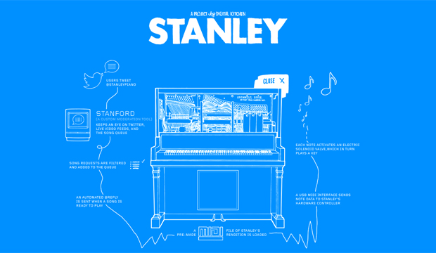 Meet Stanley, a modified player piano that takes requests via Twitter. Digital Kitchen originally created Stanley for the Capitol Hill Block Party in Seattle, Washington.