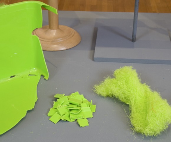 An interesting project to come out of this years RCA Show is The Polyfloss Factory, a micro factory which allows a commonly available waste material, polypropylene, to be turned into an easily transformable recycled material called Polyfloss. The project, from Nicholas Paget, Emile de Visscher, Audrey Gaulard and Christophe Machet, allows any skilled maker to use this playful material to create a range of high value objects from a resource that would otherwise have gone to waste.