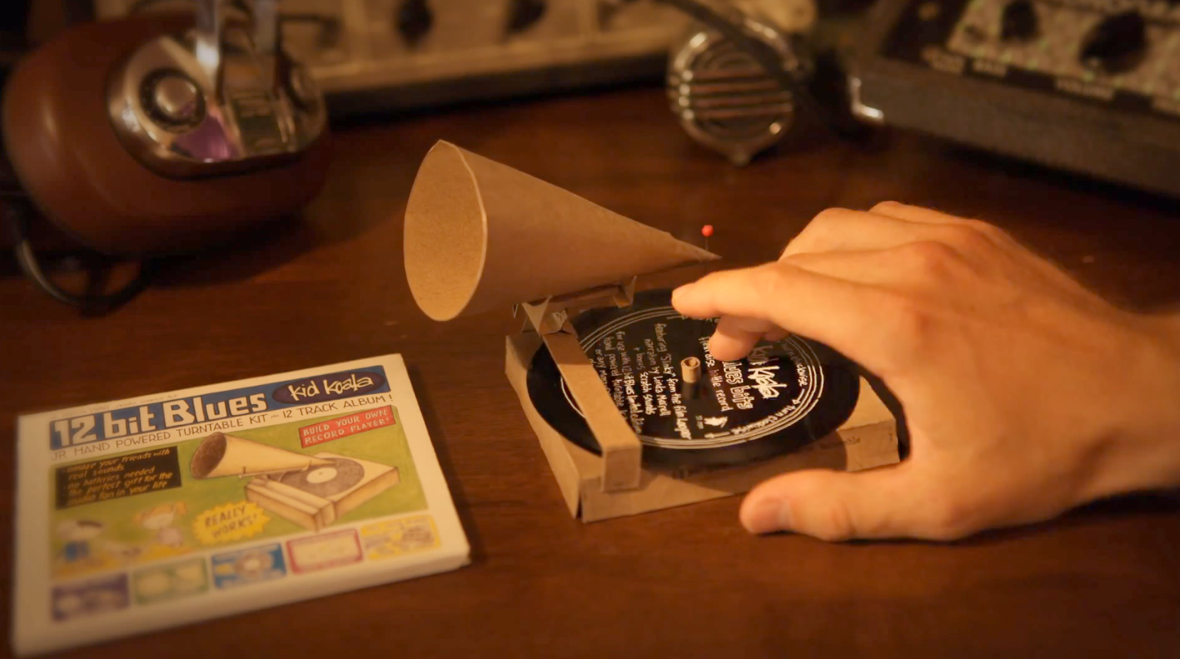Kid Koala, like most DJs with at least a little talent and history, is a longtime lover of vinyl. He's sharing his appreciation through a new release. "The packaging for the first run of Kid Koala's 12 bit Blues album on CD and 2LP will include a cardboard hand powered record player kit! It also includes a mini flexi disc record that can be played on the kit."