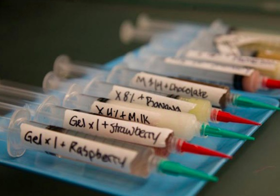 The printer ‘inks’ are essentially foods in fluid form and printing a main course works in a similar way to other additive manufacturing methods: the food is designed from an electronic blueprint created in FabApps. This provides a huge scope for design; totally new textures can be created through stochastic printing and new flavours can be fashioned by varying the chemical composition of a dish (the paradoxical deliciousness of blue cheese and chocolate is easily understood via the ingredients’ chemical compatibility).