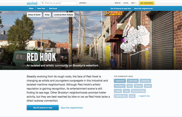 Airbnb is now expanding their domain with Neighborhoods, a web service that allows users to filter through specific areas within a city using tags like "gritty", "hipster", "expensive" and "celebrities". Once you settle on a neighborhood, the site offers a well-curated collection of photos and "local knowledge" from that area, as well as the most popular spots for rent. Right now guides are only offered for seven of the 26,000 cities (Rio, New York, San Francisco, London, Berlin, Paris and Washington) but we're confident that number will grow.