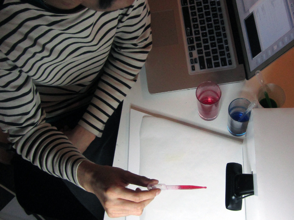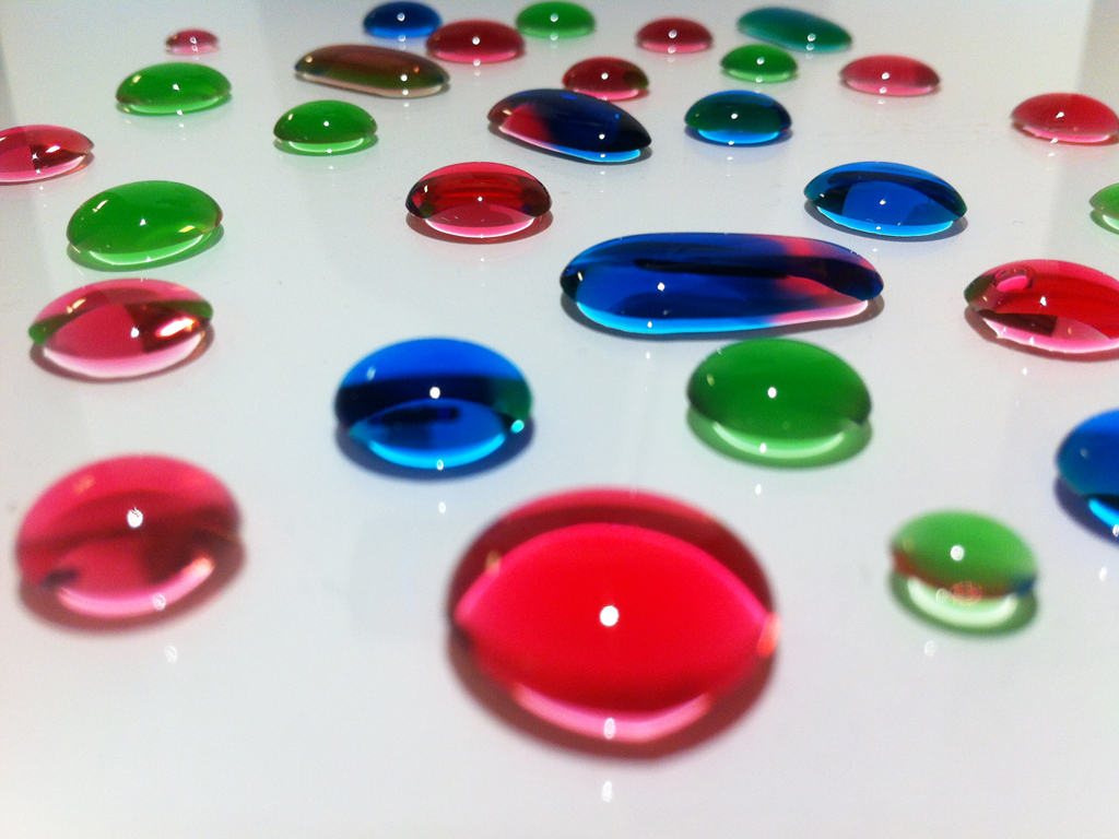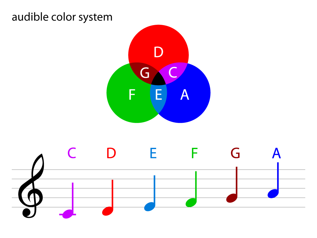 The concept behind their cross-sensory system is that each base colour (red, green, and blue) can be assigned to a different musical note (A, D, and F). A webcam then detects the colour and size of a liquid drop and translates it into sounds. When the primary colours are mixed to make purple, teal, or brown, the software generates new notes (C, E, and G).