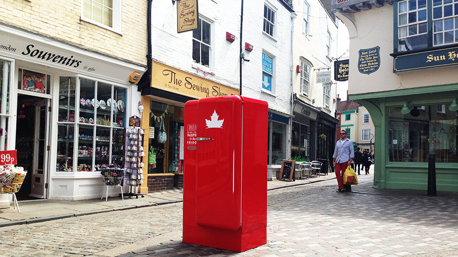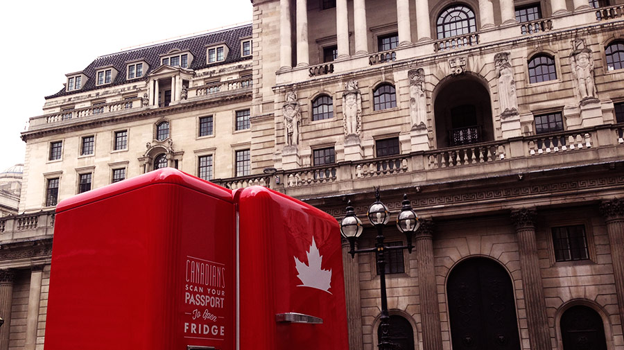 The quirky campaign was created by Rethink agency, and aimed to restore Canadian pride, and promote Canadian tourism. Canadians could scan their passport for the fridge to magically open, making them very popular all around.