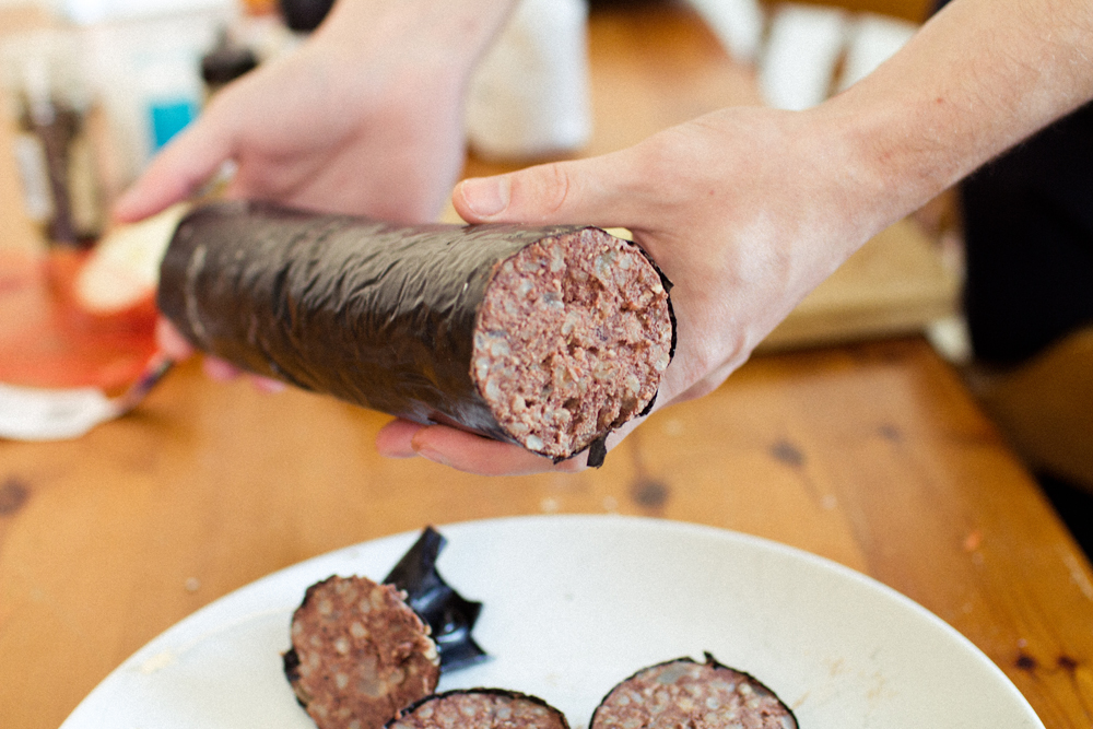 No foodstuff made from the blood of a living animal has ever been brought to the market. John anticipates (and indeed relishes) other consequences which could result from Black Market Pudding carving out a new section in the marketplace. For one there is no regulatory infrastructure in place to cope with such a product, but that uncertainty is part of the appeal: ‘I’m interested to see how Black Market Pudding will be regulated’, muses John. ‘My hope is that by bringing an unusual situation into the marketplace, this will engender new policies and thinking around our consumption of animal products and foodstuffs.’
