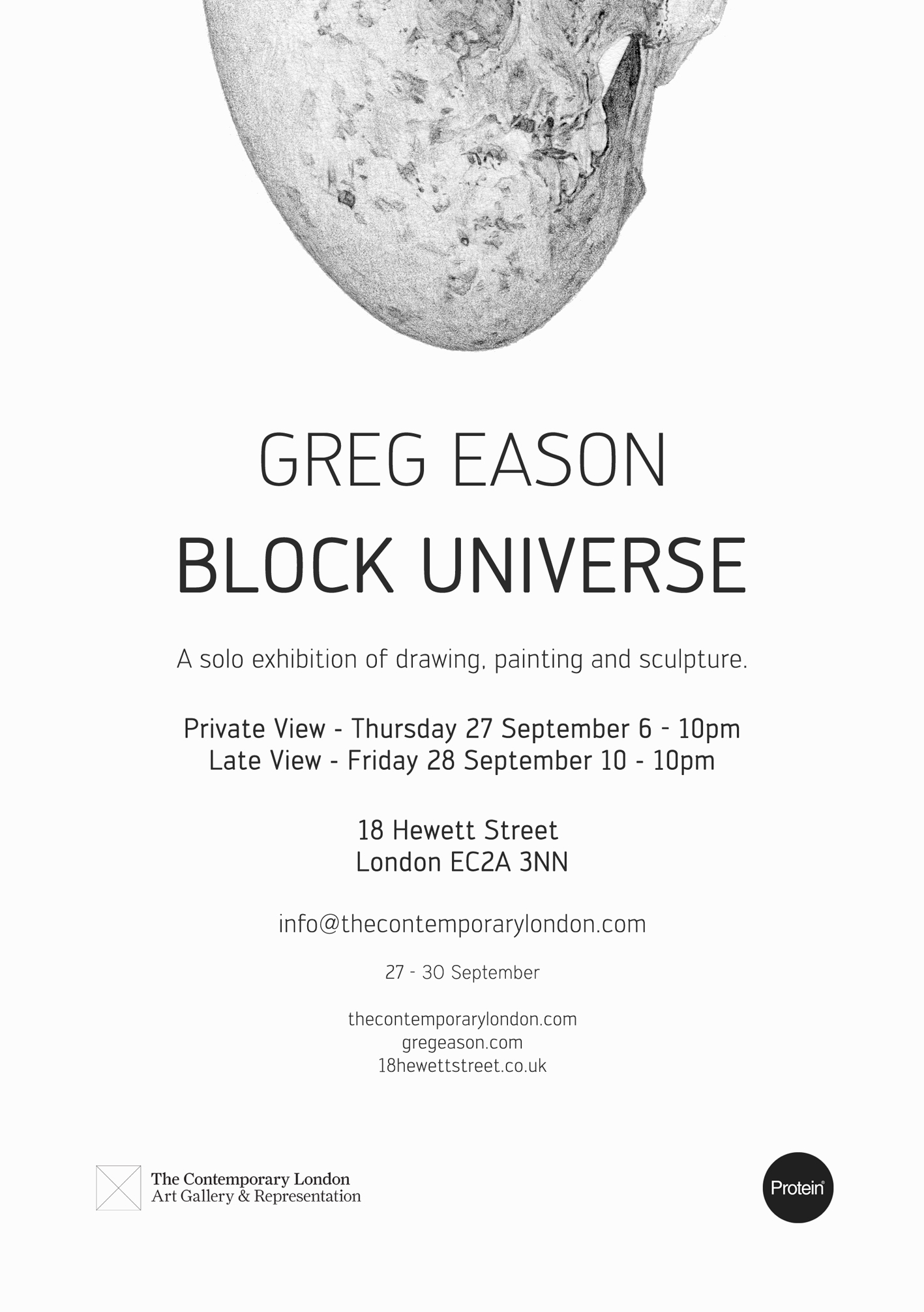 This Thursday, we are excited to announce that our gallery, 18 Hewett Street, is hosting Greg Eason’s first highly anticipated solo show with The Contemporary London, marking an exciting landmark in the talented British young artist’s career. The exhibition, Block Universe, sees Eason brand into the philosophical theory around the concept of ‘time’ and explore new media.