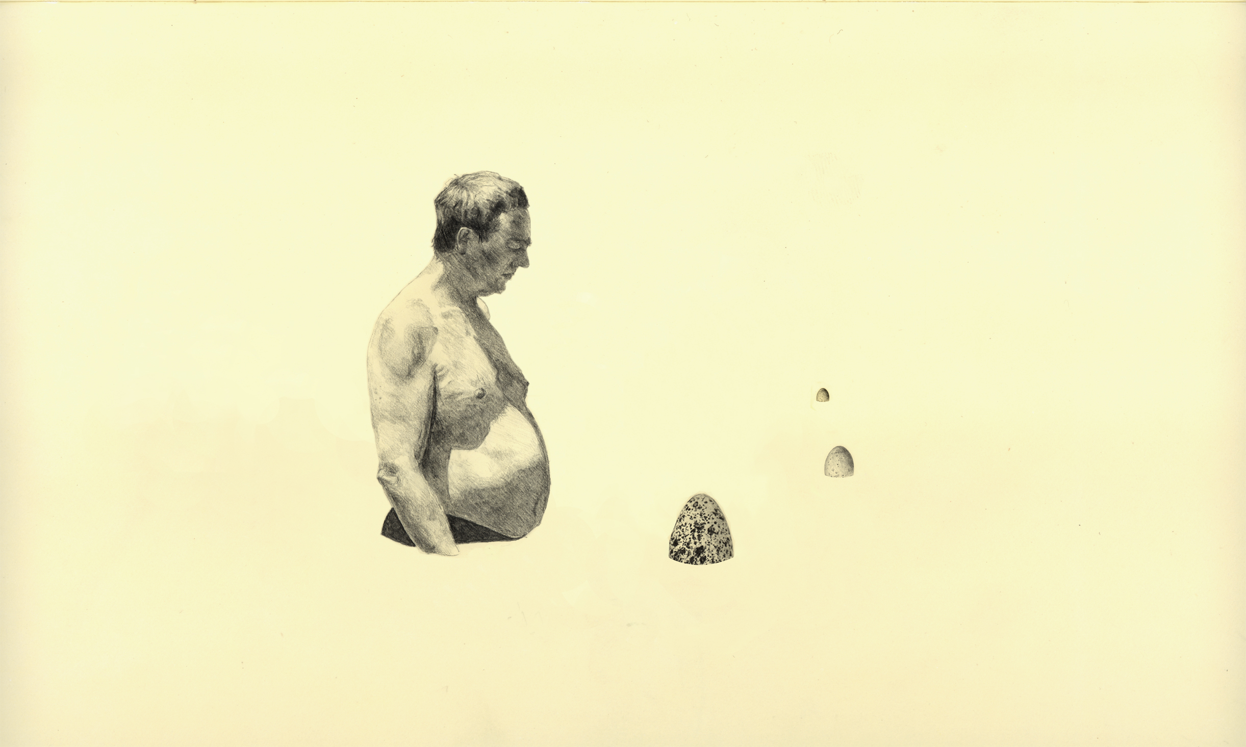 Whilst Eason’s practice remains primarily pencil based, juxtaposing isolated and intricate detailed figures and symbolic objects within expanisve space, this show also sees his first experimentation with sculptural forms and media, working with materials such as concrete and resin to bring his drawings into a 3D form.