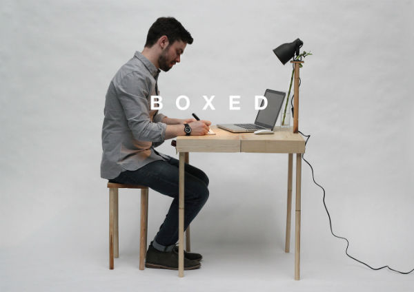 Sustainability is in the design DNA of Tyrone Stoddart's latest project, BOXED. The Scottish designer has developed a multifunctional and adaptable piece of furniture that all fits into a single suitcase. Within the suitcase are the pieces required to set up a desk, coffee table, two stools and a lamp. Each piece is easily assembled, with no need for any tools. Not only does the BOXED project meet high standards of form and function, but it's also entirely made wood from Ash wood. The significance of this choice is to raise awareness of a disease called Chalara, a disease caused by a pathogenic fungus that affects Ash trees.