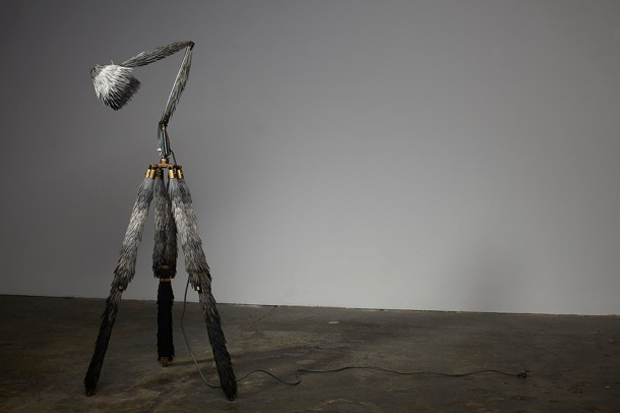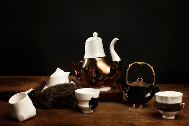 Their first exhibition, Broached Colonial, opened in Melbourne last week and studied the period from 1788-1840, just after the industrial revolution started to permeate Australia. The final objects represent a range of responses to the period, these include Lucy McRae's 'Prickly Light' – a leggy lamp with a harsh second skin – and the 'Briggs Family Tea Service', a tea set made from porcelain and bull kelp inspired by the marriage of free settler George Briggs to Woretermoeteyenner of the Pairrebeenee people.