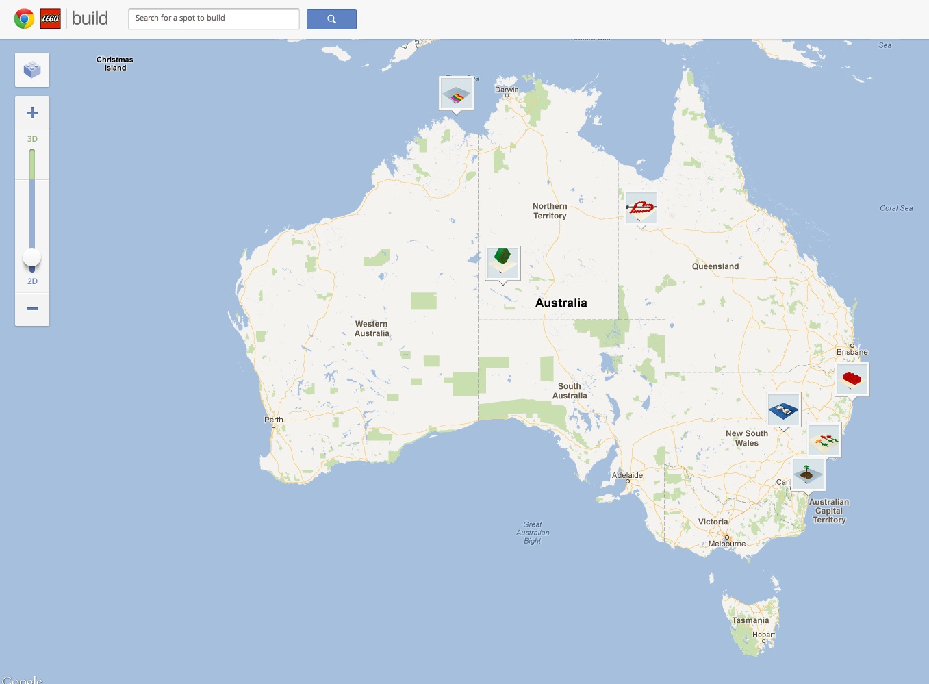 Build any virtual Lego construction you want on your very own Google 'plot' of Australia.