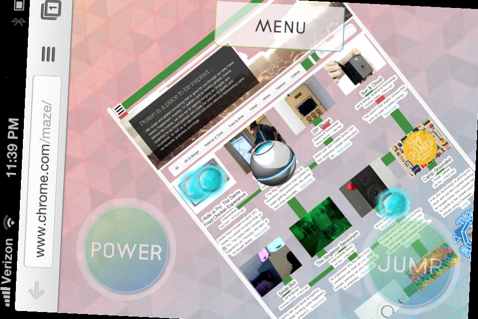 It’s a lot of fun in a Marble Madness kind of way, but the groundbreaking thing about Chrome Maze isn’t gameplay. What’s far more revolutionary is the ability to explore the Internet as a pure physical space, an experience that even the most hardcore Safari loyalists should appreciate.