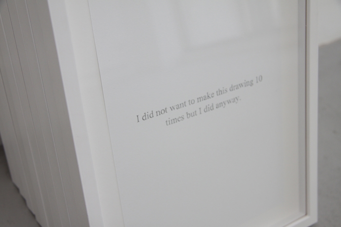 His work is minimal, masking the fact that it is highly labour intensive, and all painstakingly hand rendered. Other pieces on show include pencil drawings of text that are so regular they look like prints and hand cut collages. The emphasis is really on the labour and skill, and is well worth checking out.