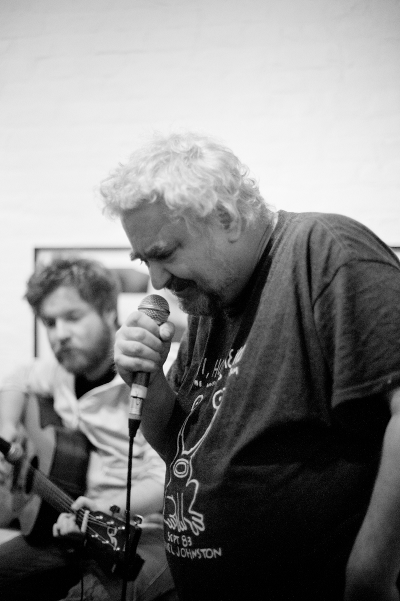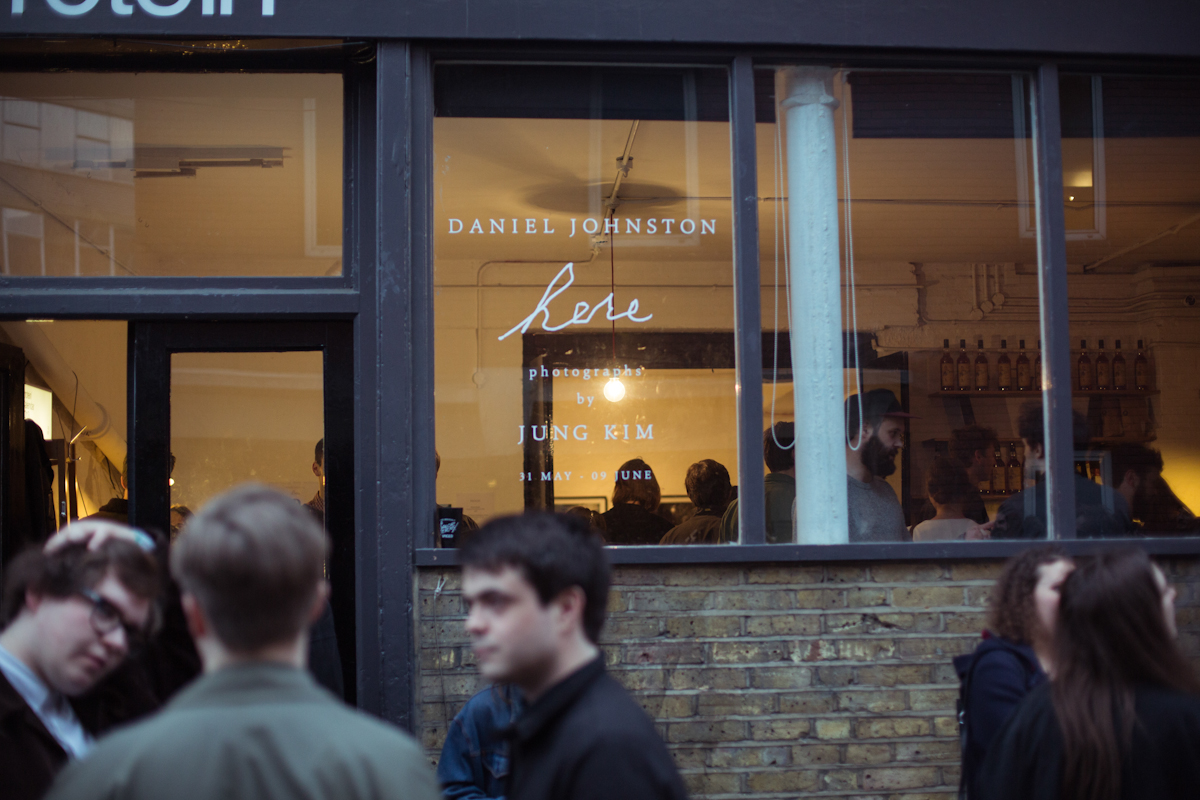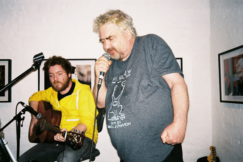 On Saturday evening, to celebrate the Daniel Johnston: here exhibition currently showing in our 18 Hewett Street Gallery, the man himself performed a secret, intimate set to room of lucky fans. With support from supergroup put together specially for this one off event made up of Charlie and Sam from Charlie Boyer and the Voyeurs and Steffan Halperin from Klaxons on drums.