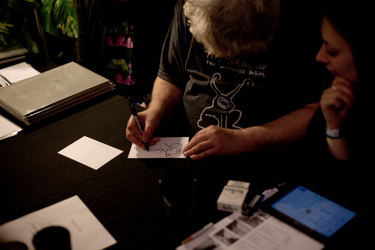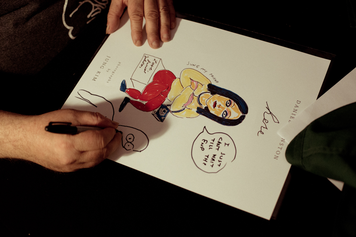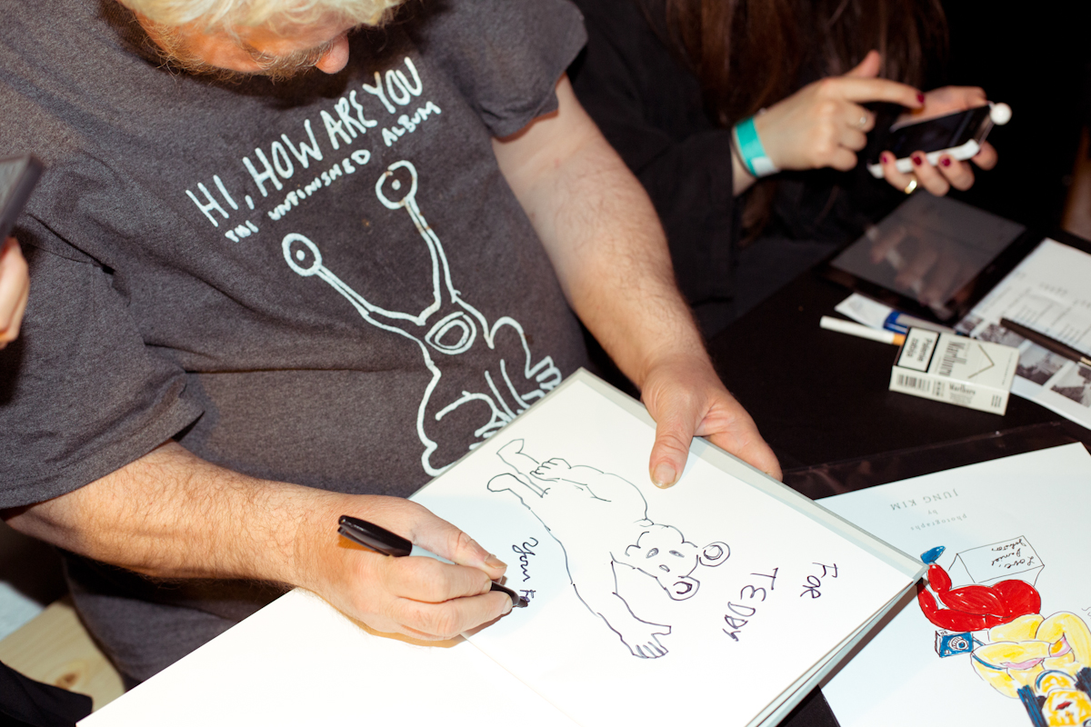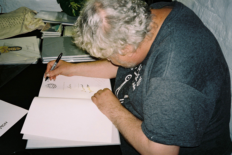 Daniel Johnston also took time to sign copies of photographer Jung Kim's book that is serving as the source for the exhibition.