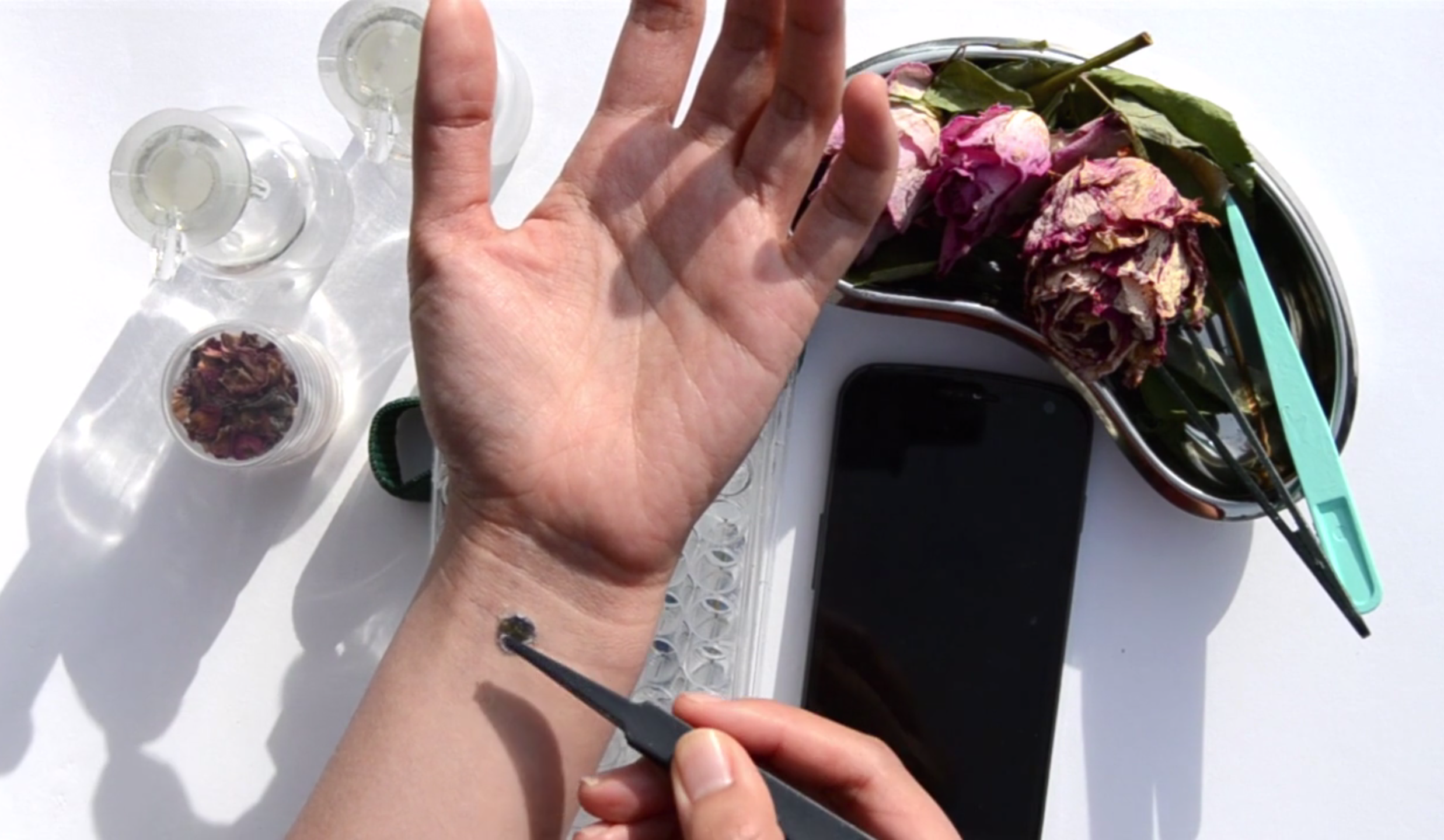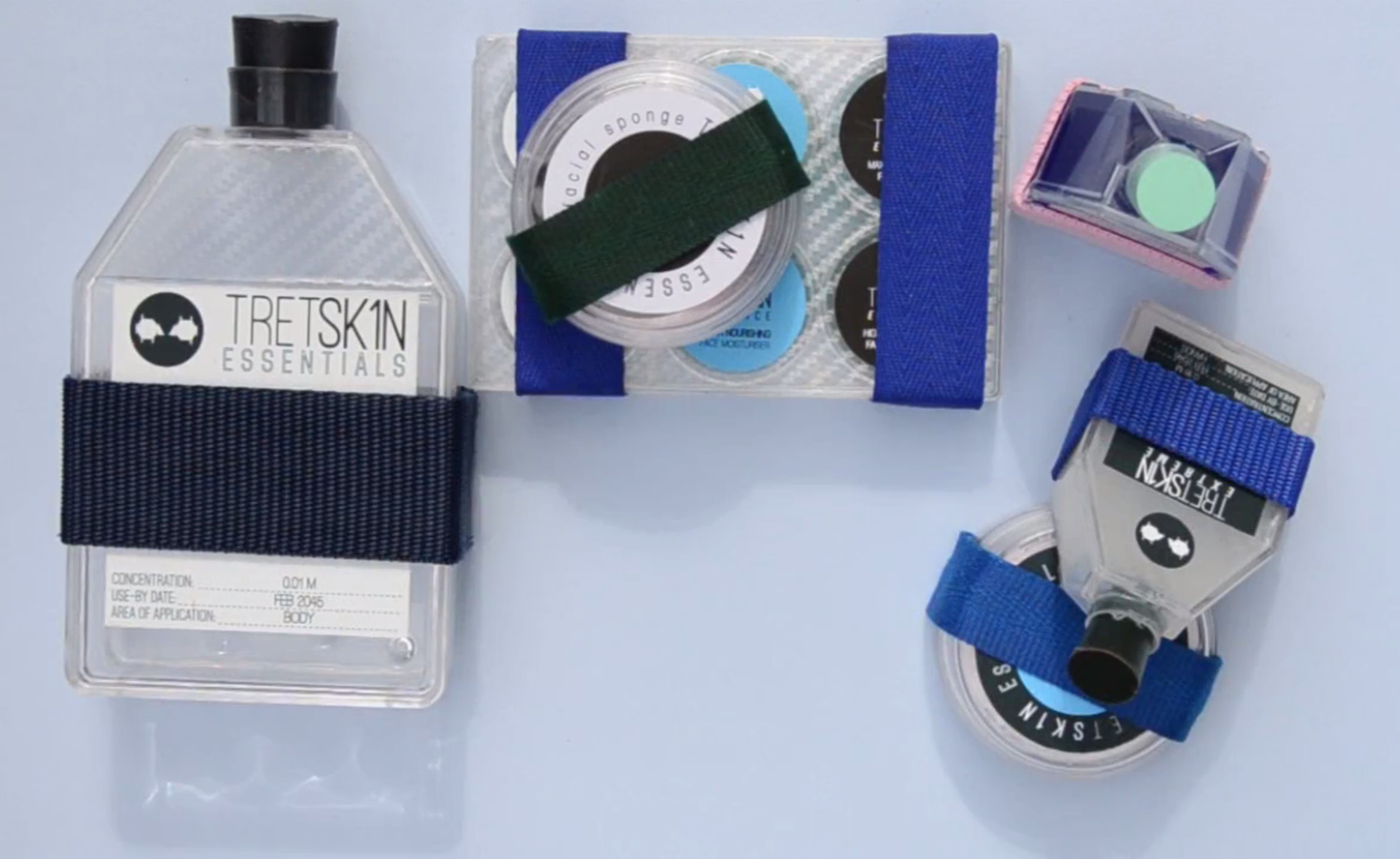 The entire collection, entitled Tretsk1n, is made using trehalose, a natural sugar that protects cells from dehydration, which enables a wide range of organisms to survive in extreme environments. Tai has also included electronic tattoos to track hydration levels and inform users when they need to re-apply products.