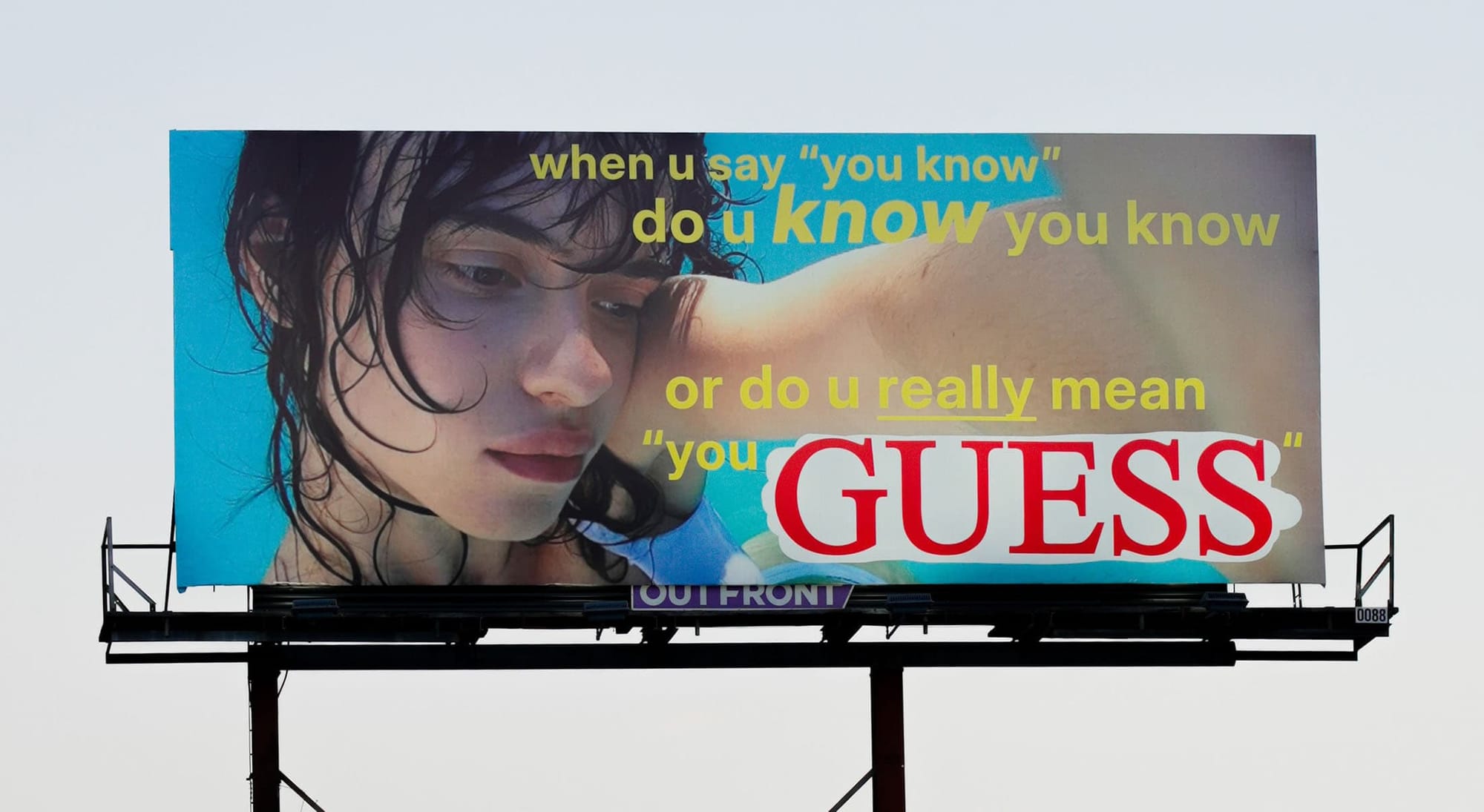 GUESS Jeans uses memes differently. Shot on an iPhone 5c, blown up to billboard scale, one of its campaigns earlier this year leans into the texture of early internet image-making. Lo-fi selfies overlaid with meme-style scraps of text, somewhere between Tumblr archive and Twitter relic. It taps into another function of memes: not just humour, but comfort and nostalgia.