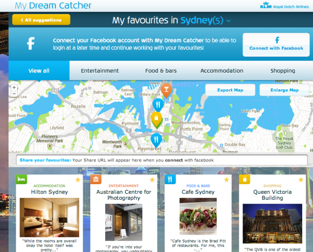 It seems KLM are taking their previously launched Must See Map, which relied on information taken from the user's own social media circle, one step further. Dream Catcher could perhaps be considered the next phase of travel tools, that, like British Airways' similar concept Picture Your Holiday, offer an effective, tailored guide to your holiday.