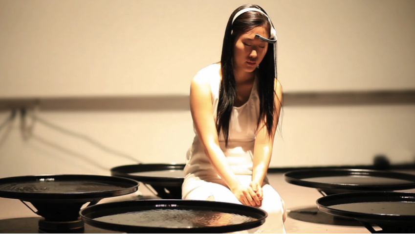 Eunoia is a mind-bending performance by New York based artist Lisa Park, in which she uses her brain waves to manipulate water. While meditating, Lisa is wearing a headset device embedded with EEG sensors that measure brain activity frequencies associated with emotional states.