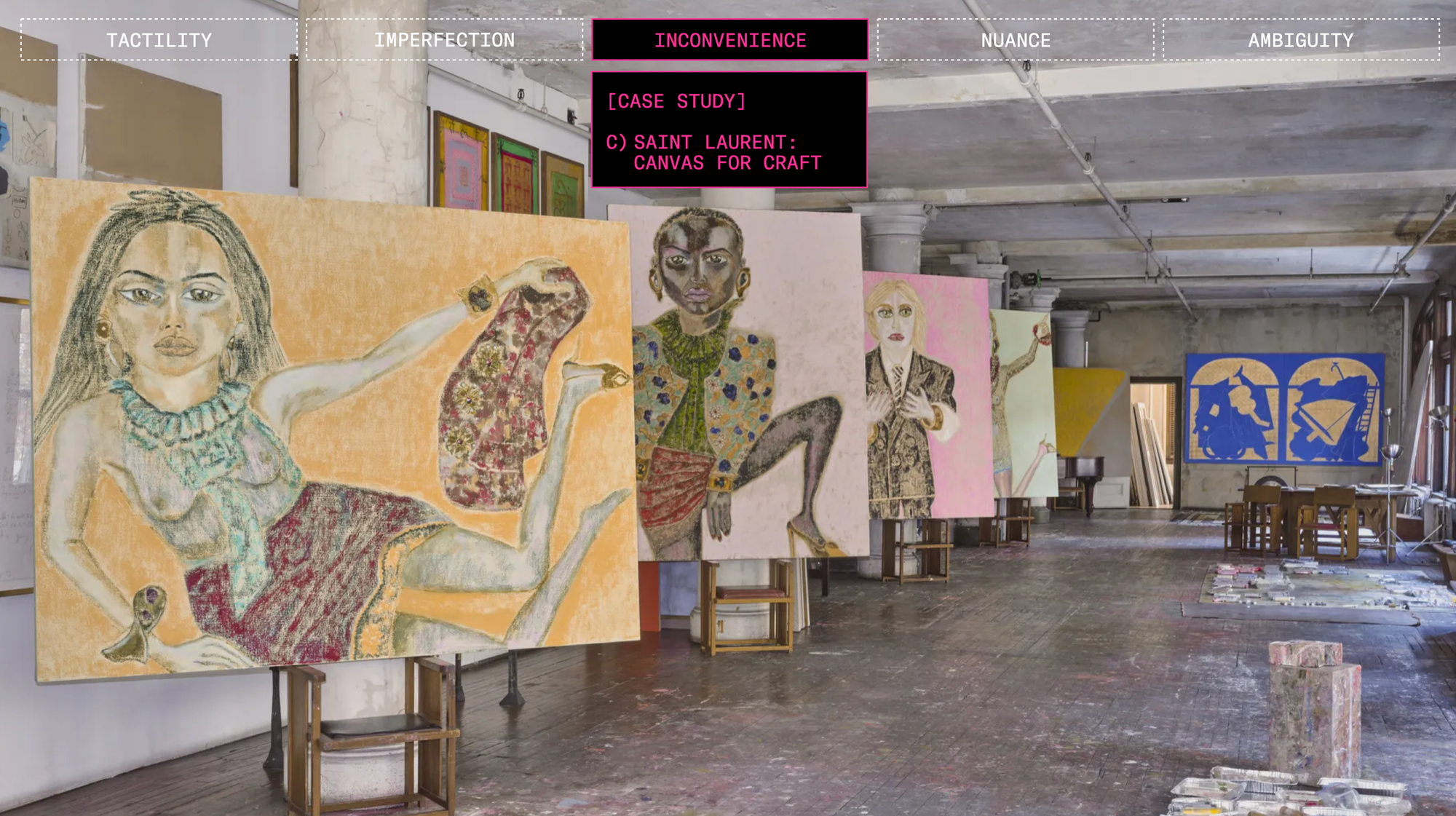 Saint Laurent’s Spring/Summer 2025 campaign is slow, tactile, demanding. Anthony Vaccarello commissioned Italian artist Francesco Clemente to paint portraits, including Zoë Kravitz. Friction is in every brushstroke, in every layer, in every texture. It resists immediacy. And that’s what gives it meaning.