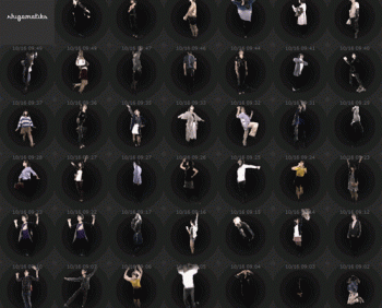 The Inspired By Perfumeexhibition focuses on the advanced media-based stage production techniques Rhizomatiks use for Japanese electro-pop group, Perfume. Using a 3D scanner, dance data and animation technology, visitors to the Tokyo Opera City Art Gallery exhibition were transformed into animated GIFS which they could keep and download. Here are some examples.