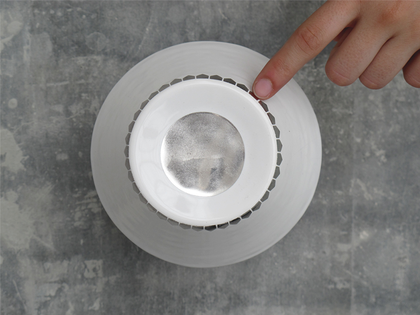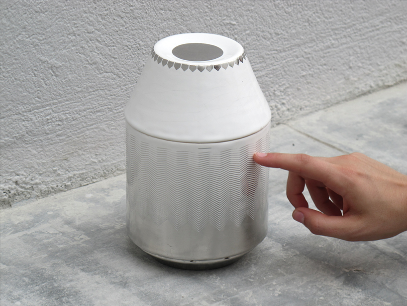 The body of the radio is adorned with special palladium paint, which has conductive properties. The device is covered in geometric patterns, and each one of them matches a particular setting: on/off, volume and frequency…It is meant to be quite intuitive.