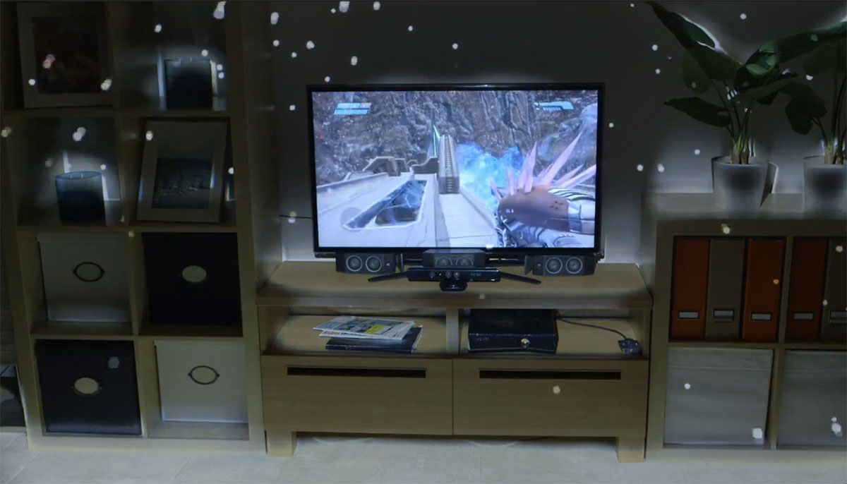 Microsoft’s Kinect for the Xbox 360 was a perhaps not the Wii-toppler they hoped it would be but it is, undisputedly, an impressive piece of technology with a lot of untapped potential. Their latest utilastion of the equipment is called the IllumiRoom and involves the scanning of the room by the camera and the projection of the peripherals of the TV screen on the walls, all around the viewer.
