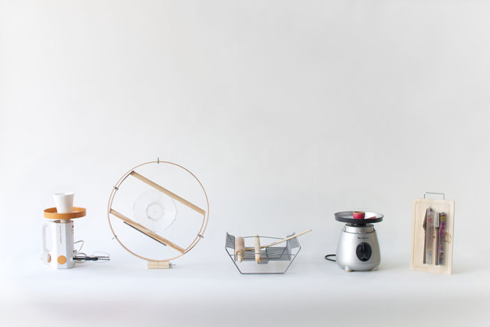 But that doesn't mean the average home is completely without its production capabilities. Product designer David Steiner explores this idea in his latest project that sees a series of everyday objects, from cutlery to lampshades, built using only household appliances. For example he repurposed an embroidery hoop into a rotating cast and a blender into a pottery wheel, and with these new tools, produces bowls, bottle openers and drink mats to name a few.