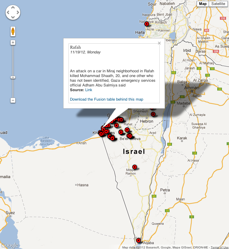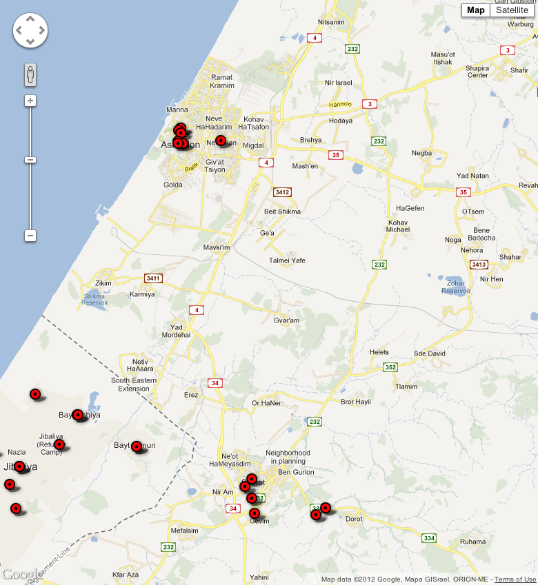 Since the assassination of Hamas leader Ahmed al-Jabari last week the violence in the Middle-East region has escalated frighteningly fast. Missile attacks from both sides are becoming all the more frequent and the list of civilian casualties is growing by the day. To help keep up to date with the situation the Guardian has put together an interactive map of the Gaza strip and surrounding territories that is updated as reports of future incidents are received. With links to sources as well as addresses eye witnesses to send photos and videos to, this is an example of of modern news reporting making use of its global audience, and the tools they now have to help build a clearer, more detailed picture of international events.