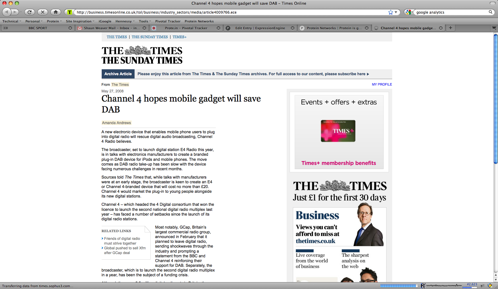British broadcaster Channel 4 is currently looking into new ways to implement DAB radio into already-existing devices such as mobile phones and mp3 players. Channel 4 is in talks with various electronics manufacturers to develop an branded plug-in device that delivers DAB software and hardware for release to coincide with the launch of the broadcaster's new radio service, E4 Radio. The device will allow unrestricted access to radio channels other than E4 Radio and will cost no more than £20. While some manufacturers have already developed similar devices, Channel 4 hopes that the strength of its brand will facilitate marketing DAB to young people. The UK's digital radio industry suffered a great blow in February when GCap media, the largest British commercial radio group, announced that it planned to leave digital radio. Source: http://business.timesonline.co.uk/tol/business/industry_sectors/media/article4009766.ece