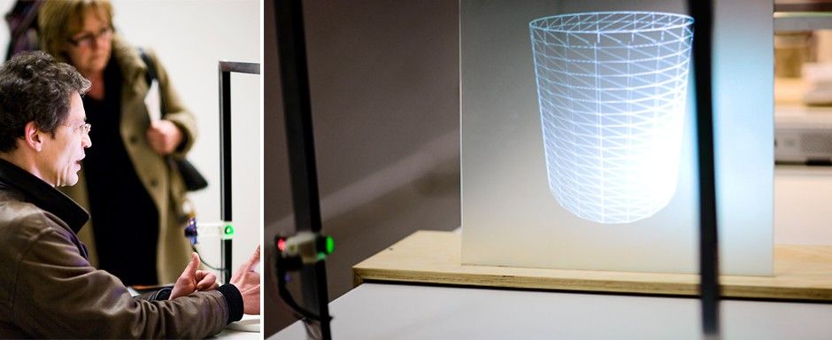 The industrial designer constructed a modified 3D printing machine that uses a glue gun and haptic interface to tactually control the making process. When the tip of the gun nears the invisible computer-generated 3D shape, users feel resistance which in turn provides them with a non-visual guide for creating their object. Using only tactile stimulation, makers are able to construct an item by building layer upon layer of material. The result, as Lee had hoped, is a purposefully imperfect object that shows traces of both the digital tool and the human hand.