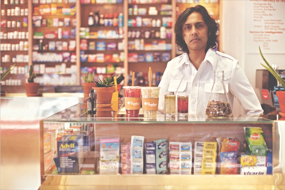 This clientele comprises a diverse demographic, says George – everyone New York has to offer. They come for not only medicine, but also advice and attention – something that harks back to the days when people had a relationship with their pharmacist. Then there’s the Wellness Bar, where people can hang out with a magazine while George mixes up a concoction from his Drinks+Drugs menu. Signs of a scratchy cough? Have a Sore Throat tea. Recovering from a boozy night (a common complaint in the Lower East Side)? Then try his best-seller, the Hangover Rx drink. “I’ve also introduced The Life Changer, which sets your digestion straight in under four hours,” says George.