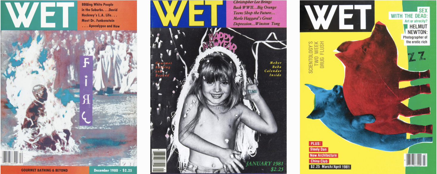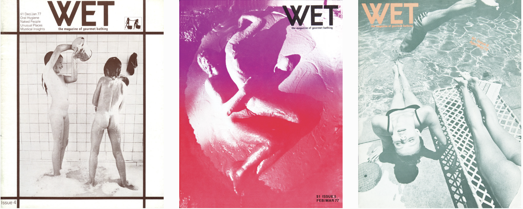 Charlie also shared WET magazine, published from 1976 to 1981 in Santa Monica and known as WET: The Magazine for Gourmet Bathing. With its playful, campy style – like the acronym “Writhing Erotic Turmoil” – WET brought a colourful, erotic edge to swimming culture and helped shape postmodern aesthetics. It reminded me of the Splash! exhibition’s section on swimwear in 60s and 70s gay magazines, which celebrated the male form as a genre staple.
