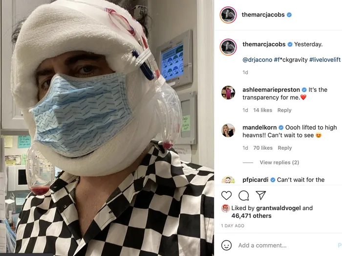 Side note: Marc Jacobs broke that rule by going public with his post-op face – and then doubled down, turning the looksmaxxing aesthetic into a Halloween costume. But I digress. The point here isn’t the popularity of plastic surgery – it’s how it’s being presented.