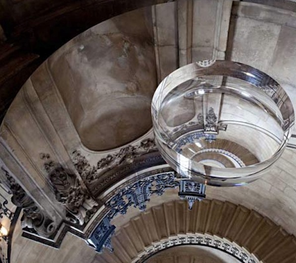 One of the most striking features at this year’s London Design Festival has been architect John Pawson’s installation inside St Paul’s cathedral. The striking old landmark has opened its doors to the festival for the first time, as Pawson, working alongside Swarovski, has suspended a huge lens into the building’s rarely seen Geometric Staircase.