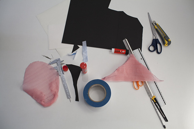 Sometimes using a 3D printer is too fiddly, especially for early ideas and models. In these situations basic stationery items will suffice. “I use them for work models, to create a type of dimensional product.”