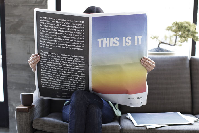 Levi’s younger, more modern capsule line Made & Crafted has recently released their first edition of Moment to Moment, a magazine made in association with super cool quarterly publication THE THING. The project features the work of 20 artistic contributors in the form of online videos, text pieces, paintings, essays, animated gifs and photography, and is not only accessible through print and digital media, but will be appearing on billboards, bus stops, and other outdoor advertising spaces in San Francisco, New York, LA, London and Tokyo throughout the summer.