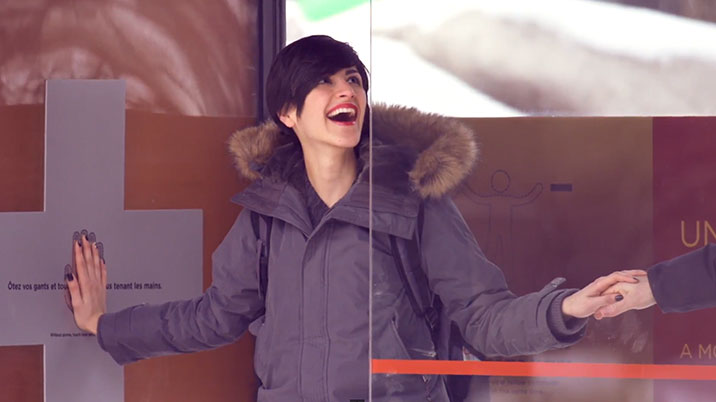 Created by Quebec agency Cossette, this bus stop has inbuilt heaters to combat Montreal’s sub zero winter conditions, but they only become functional if the people inside work together to complete a circuit. If two or more people join hands and press the sensors on the walls, electricity flows through the human conductors, activating four internal heating vents which flood the interior with warmth for several minutes.