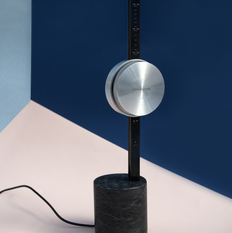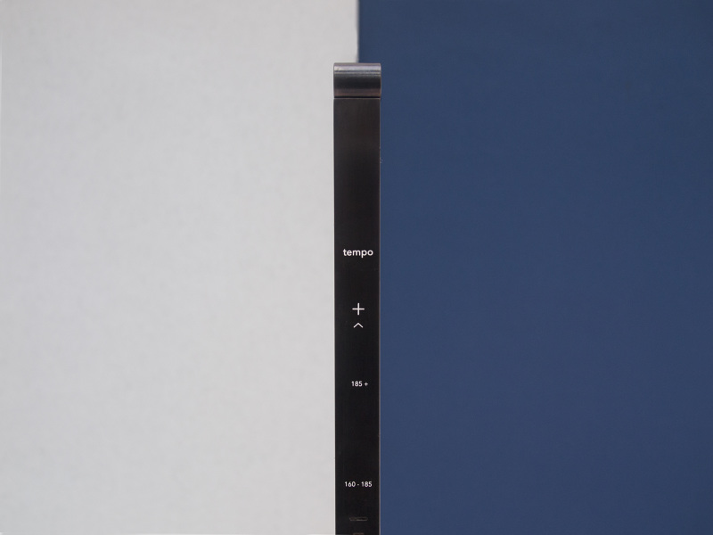 The device pairs with Spotify and features a single dial that moves vertically to mimic a metronome for tempo selection. “The device explores physical and tactile interfacing for online music without a screen through the use of an overtly reduced aesthetic that becomes the central focus for interaction,” explains Roper on her website.