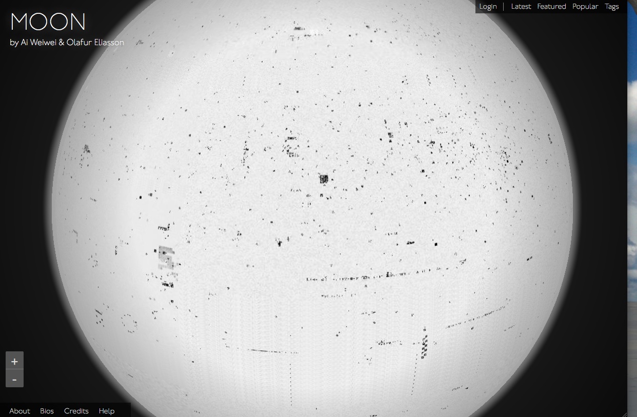 Contemporary artists Ai Weiwei and Olafur Eliasson (of China and Denmark, respectively), have created Moon, a new art project that exists online and allows public users to participate and contribute their own ideas. Visitors to the site are greeted by an illustrative rendering of everybody's favourite space rock which acts as a blank canvas to leave your mark on; and in doing so creating and continuing conversations with others around the world. From afar, these marks appear like the craters and scars of the Moon’s surface as viewed from Earth, but zoom in and they take on a more human feel, revealed as hand-drawn figures and words.