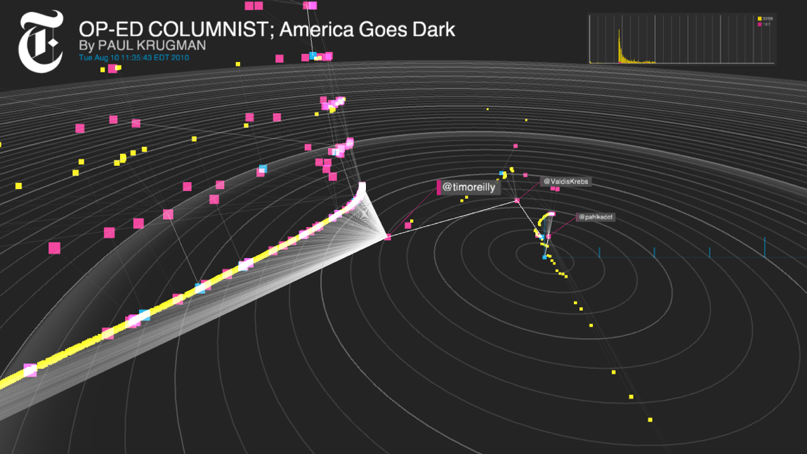 Last month we were raving about the New York Times Magazine retro re-design and now we’re floored by the latest from The New York Times’ Research & Development group. They have developed Cascade, a means to precisely analyse the structure of sharing activity on the web.