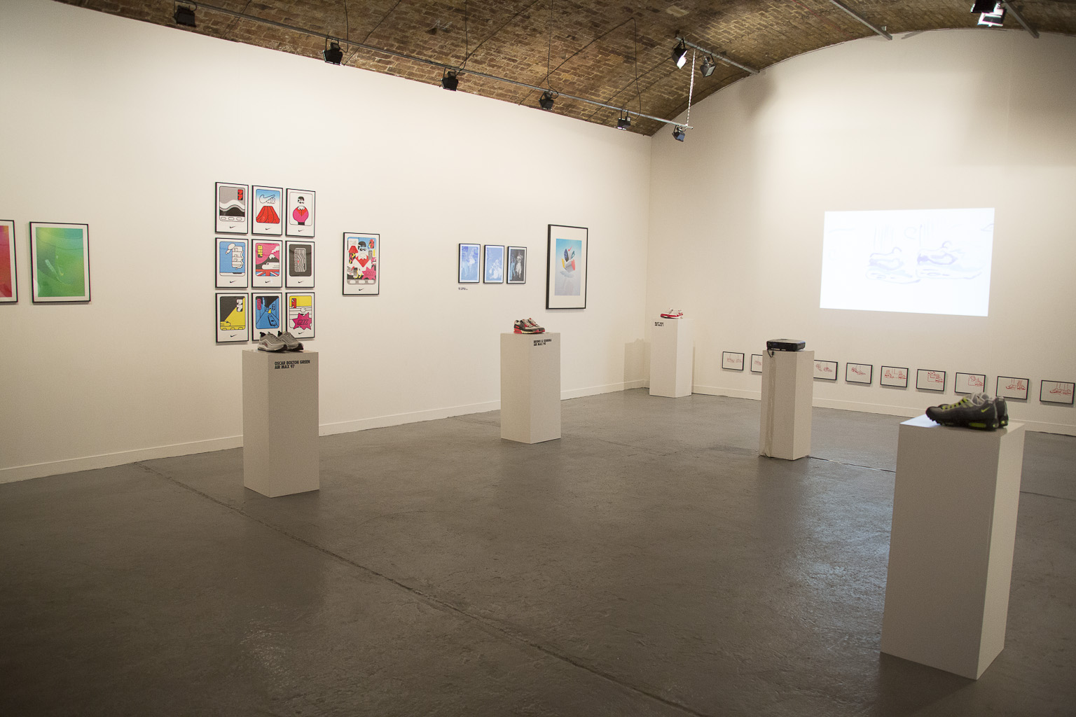 Taking up residence under one of the Hoxton arches the exhibition launch saw the space flooded with folks eager to see what the artists had done with the seminal trainer.
