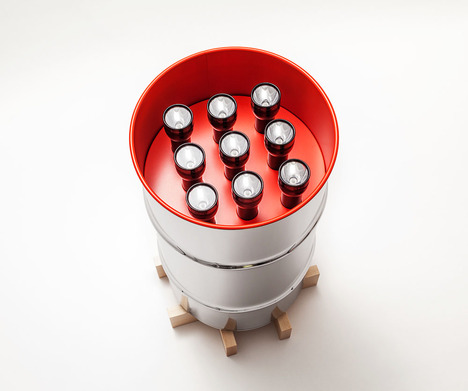 Boasting a lean, utilitarian aesthetic, the collection includes the 6BCA tent – a classic A-frame tent made from powder-coated aluminum, maple hardwood and parachute fabric. It is outfitted with a concealed LED strip that transforms the structure into a collapsible light fixture. Quest for Fire is a chrome-plated oil drum that contains a cluster of flashlights and a red-lacquered interior, offering a mechanical and playful take on traditional fire pits. Taking inspiration from nature, the Cumulus Table imposes organic characteristics onto an industrial form. Etched with horizontal, vertical and diagonal lines, the table’s aluminum surface shimmers and changes as the sun hits it.