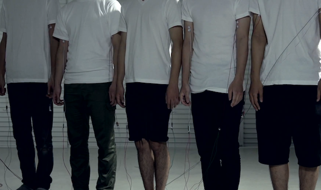 Tokyo-based Daito Manabe has created a music video that visualises each beat through electro-shocked muscle movements.