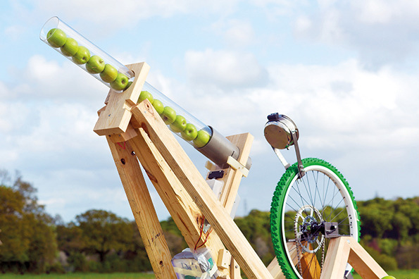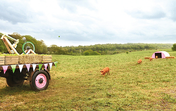 Compassion In World Farming create a system that allows you to feed pigs with an apple shooting catapult.