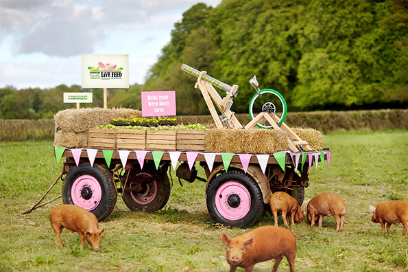 By linking a big screen at London’s Westfield to a webcam device at a farm in Buckinghamshire, The Really Live Feed gives passersby the opportunity to help out in feeding a drove of hungry pigs. With a small donation through their app – similar to popular smartphone games available – users can literally throw an apple into the field (via a large catapult) and see the result.