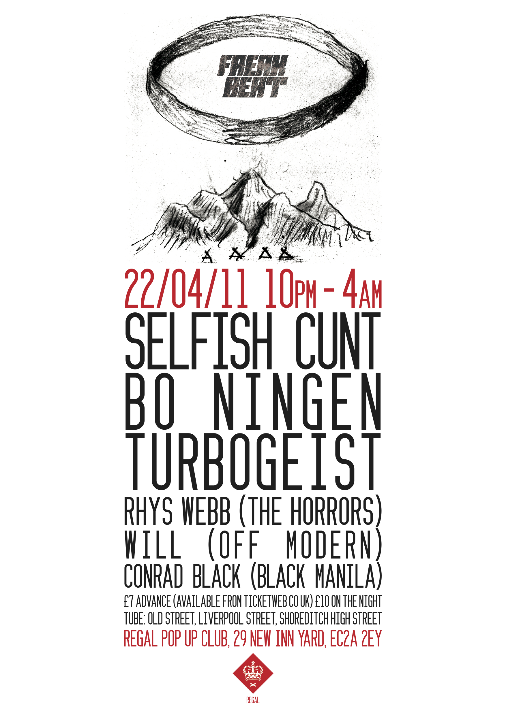 Starting over Bank Holiday weekend, their inaugural event FREAKBEAT on Friday 22 April will see the likes of Selfish C*** return to the stage after 2 years alongside Bo Ningen, Turbogeist and DJ sets from the Horror's Rhys Webb, Off Modern's Will Hunt and Black Manila's Conrad Black.
