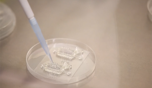 The researchers maintain that "this 3D printing method makes it easy to experiment with different [blood vessel] network designs," so it's not yet a solution to the challenge of feeding full-scale organs, but it's an interesting step in the right direction.
