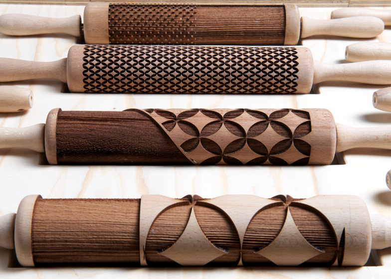 Laser-cut rolling pins that create intricately patterned, edible plates and serves as a low-tech method of making unusual things in the kitchen.