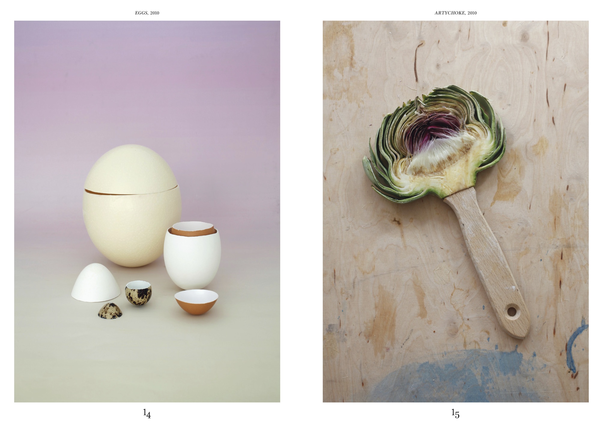 Illernberger's designs are part-graphic, part-illustration and part-photography. A typical work will involve an arrangement of everyday objects or food, that when photographed, turn into a three-dimensional illustration. Works include a hanging green dress made of been sprouts and brussel sprouts and an illustration of a brain made from two pieces of cauliflower. She's turned her vision to data visualisations, producing bar charts made from trimmed vegetables stood upright and different coloured Post-it notes stacked in a pile. And she's also been commissioned by brands such as sports brand Nike, for whom she created a giant Dunk hi-top shoe made from white plastic goods and electrical appliances.