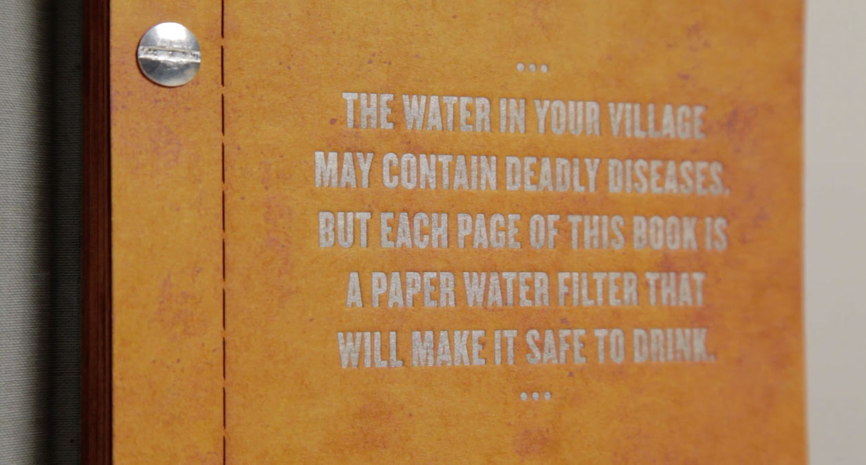 A team led by engineer Teri Dankovich have come up with a solution called the Drinkable Book, an object that educates readers about the importance of clean water, with pages that act as filters to remove 99% of bacteria from water that is poured through it.